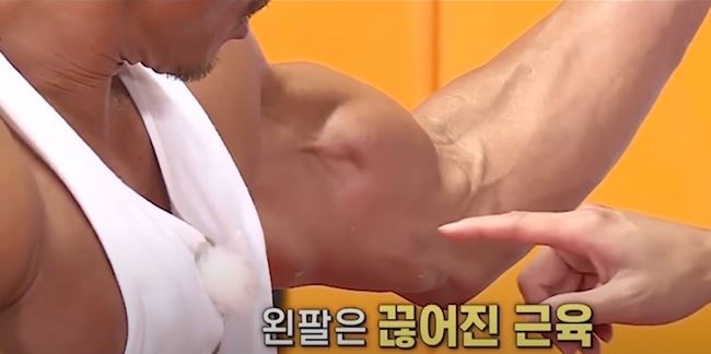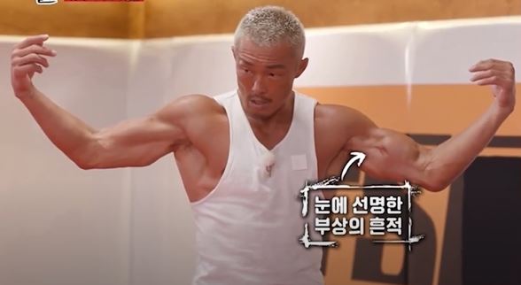 '부상 때문에 한쪽 팔로 싸우셨다고 들었다'는 말에 추성훈은 부상의 흔적을 보여주며 '여기에 힘이 많이 없어졌다.'라고 털어놨는데요.